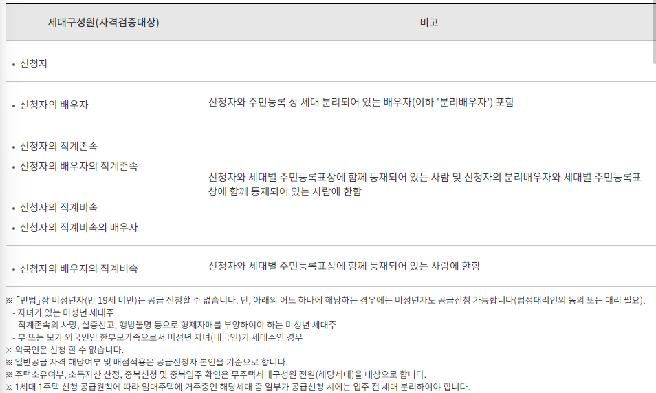 - 무주택세대구성원 : 무주택세대구성원이 주택, 분양권 등을 소유하고 있지 않는 구성원