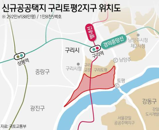 정부는 주택공급 활성화 방안의 후속 조치로 5개지구 8만 가구 규모의 신규 공공주택지 조성 계획을 발표했습니다. 전문가들은 주택공급이 부진한 이 시점에서 불안 심리를 완화할 만한 좋은 시그널이 되었다고 합니다. 하지만 이미 추진 중인 1기 신도시 특별법, 3기 신도시 사업의 진행 속도가 늦은 상태이며 구리토평2 부동산 가격의 선반영되어 있어 서울 중심지의 부동산 가격 상승이 않는 상태에서는 구리토평2지구의 가격은 느리게 상승할 것 입니다.