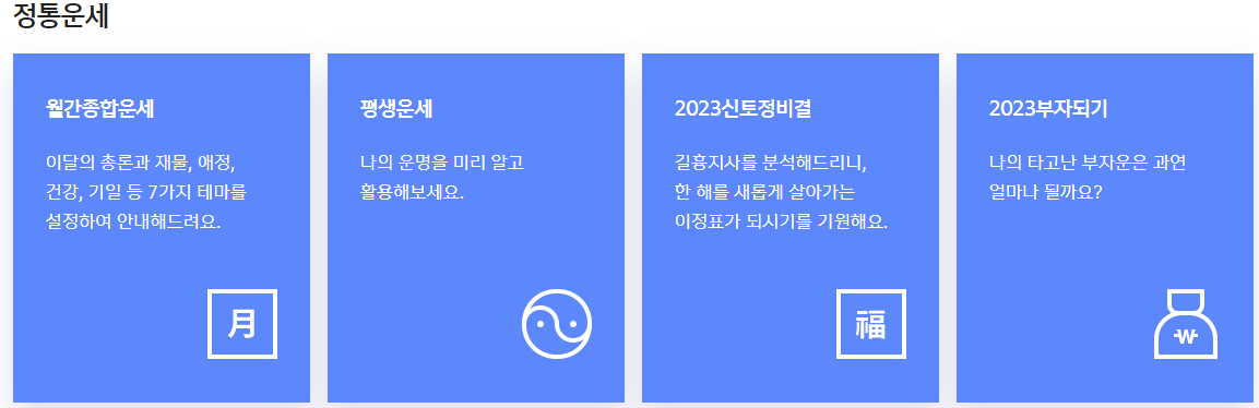 - 평생운세 : 평생의 운세를 미리 알아보기